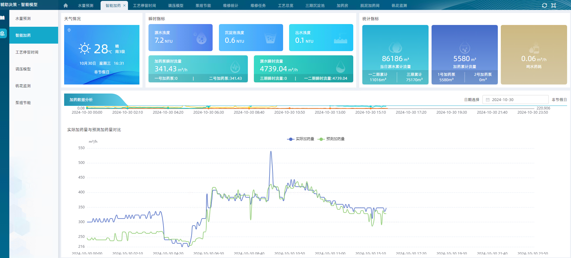 以多維度統(tǒng)計圖表的方式展現(xiàn)績效結(jié)果,識別凈水廠運行管理薄弱環(huán)節(jié),為水廠運行管理優(yōu)化提供豐富的數(shù)據(jù)展示企業(yè)門戶和決策支持,使得管理者的決策更加綜合、合理、可行,形成智能化、科學(xué)化決策,為全廠可視化、精細(xì)化、智慧化運營提供數(shù)據(jù)依據(jù)和強有力的支撐。