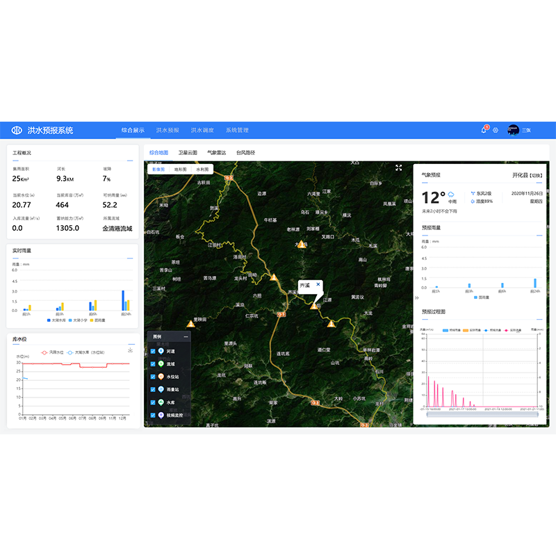 水庫洪水預報調(diào)度平臺是通過多維多時空尺度數(shù)學模型,擴展數(shù)字化表達和可視化呈現(xiàn)功能,構建知識圖譜、業(yè)務規(guī)則、歷史場景和專家經(jīng)驗等知識庫,打造數(shù)字孿生模擬仿真平臺,實時監(jiān)視、洪水預報、水庫調(diào)度、閘門信息、水雨情信息等信息,實現(xiàn)信息深度交互和融合功能,為用戶提供集水庫洪水預報和水庫調(diào)度于一身的工作平臺,